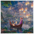 A newly found love - Rapunzel and Flynn as they boat together on her 18th birthday. Maximus, Pascal, and Mother Gothel are seen on the lakeshore.