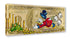 Scrooge McDuck takes a triumphant dive into his mountain of gold, proudly featured on a stylized $100 bill. This bold and playful artwork captures the spirit of Disney's famously wealthy duck in a scene that celebrate his love for fortune.